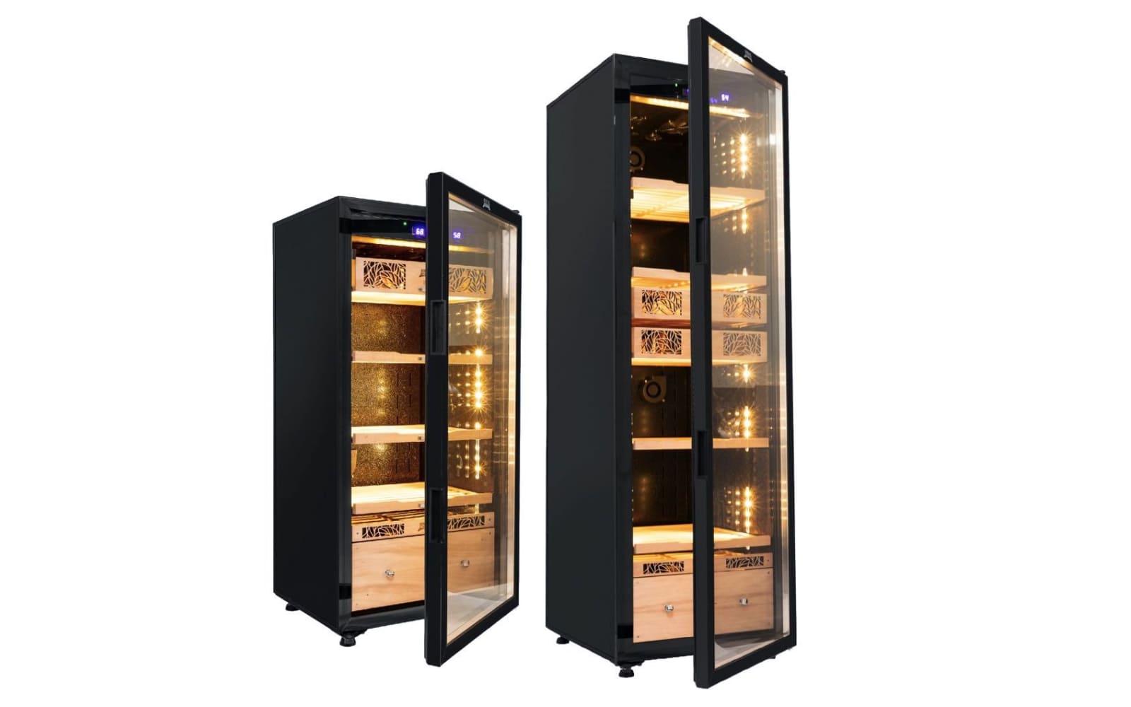 This towering model offers elite-tier cigar storage with precision climate control and a whopping capacity of 2,000 to 2,500 cigars.